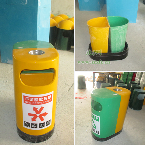 環(huán)保分類玻璃鋼垃圾桶 學(xué)校的首選深圳寶安沙井實(shí)驗(yàn)學(xué)校,是欣方圳老顧客了。按照之前訂購(gòu)的玻璃鋼垃圾桶樣板生產(chǎn),發(fā)實(shí)物照給工廠的廠長(zhǎng)確認(rèn)。A21玻璃鋼環(huán)保分類垃圾桶的規(guī)格為:680*400*850mm.這款垃圾桶來(lái)頭可不小哦,它是獲得了專利外觀設(shè)計(jì)的玻璃鋼垃圾桶。每個(gè)產(chǎn)品是經(jīng)過(guò)的嚴(yán)格生產(chǎn)程序制造出來(lái),貼上產(chǎn)品合格證,符合企業(yè)高品質(zhì)標(biāo)準(zhǔn)。玻璃鋼垃圾桶一邊嫩綠,一邊中絡(luò)黃,底座黑色,外加一個(gè)煙灰缸巧妙的搭配,簡(jiǎn)潔、美觀。桶蓋/桶身采用FRP玻璃鋼復(fù)合材料制造,具有防腐、防盜、防生銹、易清潔等特點(diǎn),表面涂層采用高分子耐老化膠衣涂層,色澤明快、持久。