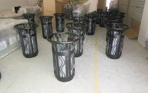 客戶訂購的這款F01花籃垃圾桶,名稱也叫鋼制垃圾桶。花籃式戶外垃圾桶頂圈圓管用35mm,厚1.5mm,扁鋼用厚度3.0mm,寬30mmm,花籃式戶外垃圾桶桶身上下圈厚度3.0mm*高65mm.花籃式戶外垃圾桶內(nèi)桶分別用塑料桶或者玻璃鋼兩種材質(zhì)。外觀呈花籃,整個形狀有點(diǎn)像打籃球的投籃口。學(xué)校的女同學(xué),投遞垃圾時可以練習(xí)投籃,不在怕投不上高高的籃球架上去。環(huán)保與娛樂相結(jié)合,為校園添加不少樂趣。