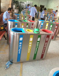 欣方圳公司擁有剪板機、折彎機、數控機床、激光切割機等專業生產設備,工廠規模實力雄厚。在分類環保回收桶方面有著20年領先同行業的先進設備和生產實力。環保垃圾桶的第一品牌。欣方圳公司用最真摯的心態為廣大客戶提到最到位的服務,也會用心讓欣方圳的產品變得無可挑剔!