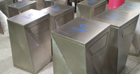 這是欣方圳為北京高校生產的一款不銹鋼五分類環保回收箱,多分類垃圾回收箱的最大好處是精準垃圾投放,變廢為寶便于后期可回收再利用,解決垃圾給城市帶來的負擔,這...