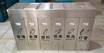 欣方圳廠家生產的不銹鋼六分類垃圾箱整體外觀方形設計,可選擇201#或304#不銹鋼材質制作,由玻璃、金屬、塑料、紙張、電池、燈管專用分類垃圾收集容器六聯式一體組成...