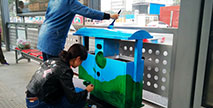 藍天白云清新美麗,可愛卡通天真童趣。鄭州快速公交站臺內兩個原本普普通通的環(huán)保果皮箱,經過一番裝扮與改造,成為了兩個別具藝術氣息的環(huán)保果皮箱。這兩個環(huán)保...