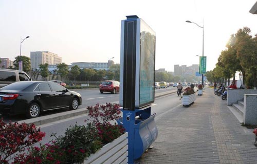 大街上出現(xiàn)智能太陽(yáng)能垃圾箱