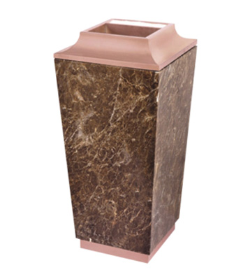 • 產品材質:采用天然的大理石與優質冷軋鋼板或不銹鋼鋼板制作而成,四面大理石用鋼板螺絲固定于桶體,有內桶,方便提倒垃圾,桶頭煙灰盅可放白石子可清洗,鋼板經折彎沖壓一次性成型。產品一律用室外粉靜電噴塑,經過180°的高溫,延長垃圾桶使用壽命,顏色持久不變亮麗如新。