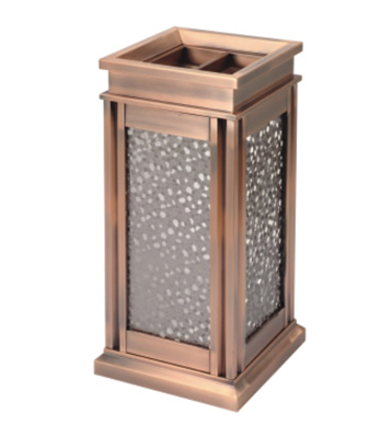 • 產品材質:采用天然的大理石與優質冷軋鋼板或不銹鋼鋼板制作而成,四面大理石用鋼板螺絲固定于桶體,有內桶,方便提倒垃圾,桶頭煙灰盅可放白石子可清洗,鋼板經折彎沖壓一次性成型。產品一律用室外粉靜電噴塑,經過180°的高溫,延長垃圾桶使用壽命,顏色持久不變亮麗如新。