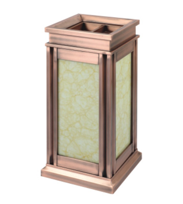 • 產(chǎn)品材質(zhì):采用天然的大理石與優(yōu)質(zhì)冷軋鋼板或不銹鋼鋼板制作而成,四面大理石用鋼板螺絲固定于桶體,有內(nèi)桶,方便提倒垃圾,桶頭煙灰盅可放白石子可清洗,鋼板經(jīng)折彎沖壓一次性成型。產(chǎn)品一律用室外粉靜電噴塑,經(jīng)過180°的高溫,延長(zhǎng)垃圾桶使用壽命,顏色持久不變亮麗如新。