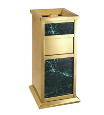 • 產品材質:采用天然的大理石與優質冷軋鋼板或不銹鋼鋼板制作而成,四面大理石用鋼板螺絲固定于桶體,有內桶,方便提倒垃圾,桶頭煙灰盅可放白石子可清洗,鋼板經折彎沖壓一次性成型。產品一律用室外粉靜電噴塑,經過180°的高溫,延長垃圾桶使用壽命,顏色持久不變亮麗如新。