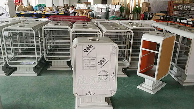 欣方圳專業生產廣告垃圾桶,車間有數控折彎機、數控沖床、滾圓機、數控車床、激光切割機、送樣機、鏜床、二保焊機等行業先進設備。
