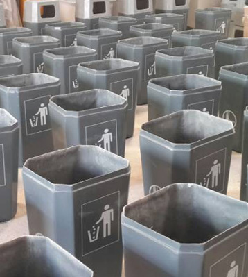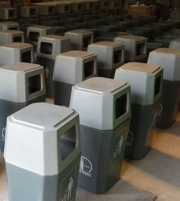玻璃鋼垃圾桶桶身和內膽部分,采用高級玻璃鋼材質一次成型,經過打磨、除塵 、噴漆等一系列后期工藝然后出成品。