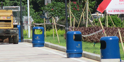 玻璃鋼垃圾桶桶身和內膽部分,采用高級玻璃鋼材質一次成型,經過打磨、除塵、噴漆等一系列后期工藝然后出成品。