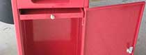 欣方圳鋼板沖孔室內單桶中國紅噴塑造型,側面開門以保證不影響美觀,也方便工人方便清理垃圾