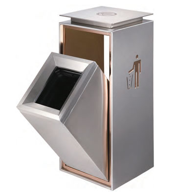 • 使用范圍:高檔不銹鋼垃圾桶表面光滑、亮麗,是電梯口、寫字樓、學校、物業、賓館、酒店、機場、汽車站等擺放的首選。