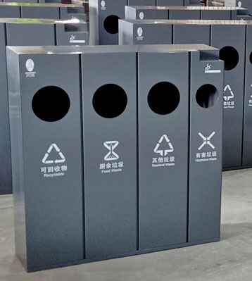 欣方圳酒店室內(nèi)鋼制三四分類垃圾桶批量生產(chǎn)圖