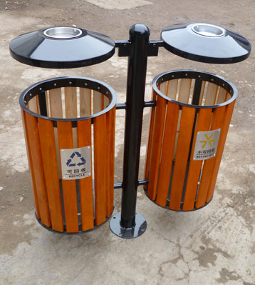 • 產品材質:圓形環保鋼木分類垃圾桶定制可選進口實木(防腐木.紅胡桃.山樟木等)、鋼結構、塑木等。