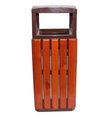 戶外鋼木單桶垃圾桶戶外擺放圖