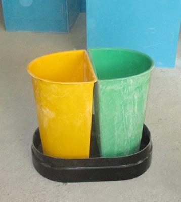 玻璃鋼垃圾桶桶身和內膽部分,采用高級玻璃鋼材質一次成型,經過打磨、除塵 、噴漆等一系列后期工藝然后出成品。