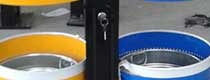 戶外分類烤漆鋼制垃圾桶桶頭側翻設計可輕松取出內桶,便于垃圾清運回收。立柱帶三角鎖可鎖住桶頭,保護內桶防止人為破壞。戶外防銹能力強,可長期擺放不褪色,堅固耐用。